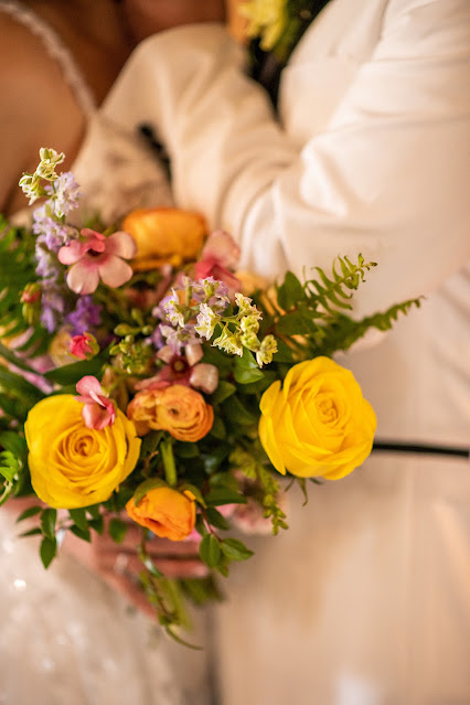 If you love bright colors and lots of floral accents then this is the spring wedding inspiration for you. Their cake was covered in floral buttercream, their guest table had gorgeous colorful florals, the seating chart was also whimsical and floral, and my favorite part was the gorgeous floral install on the grand staircase inside the estate.